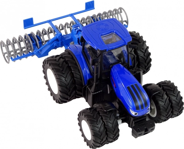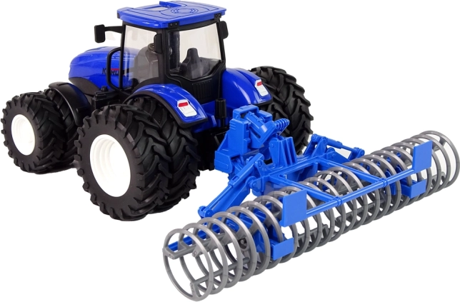 Atklājiet jautru RC traktoru mērogā 1:24 ar zilu metāla pārsegu un salokāmu disku agregātu aizmugurē. Ar ērto 2,4 GHz pulti vadība uz priekšu/atpakaļ un uz sāniem ir intuitīva, gumijas riepas nodrošina labu saķeri, bet priekšējie lukturi izgaismo ceļu braukšanas laikā. Lieliska izvēle radošai lauksaimniecības spēlei un bērnu iztēles attīstīšanai no 3 gadu vecuma.