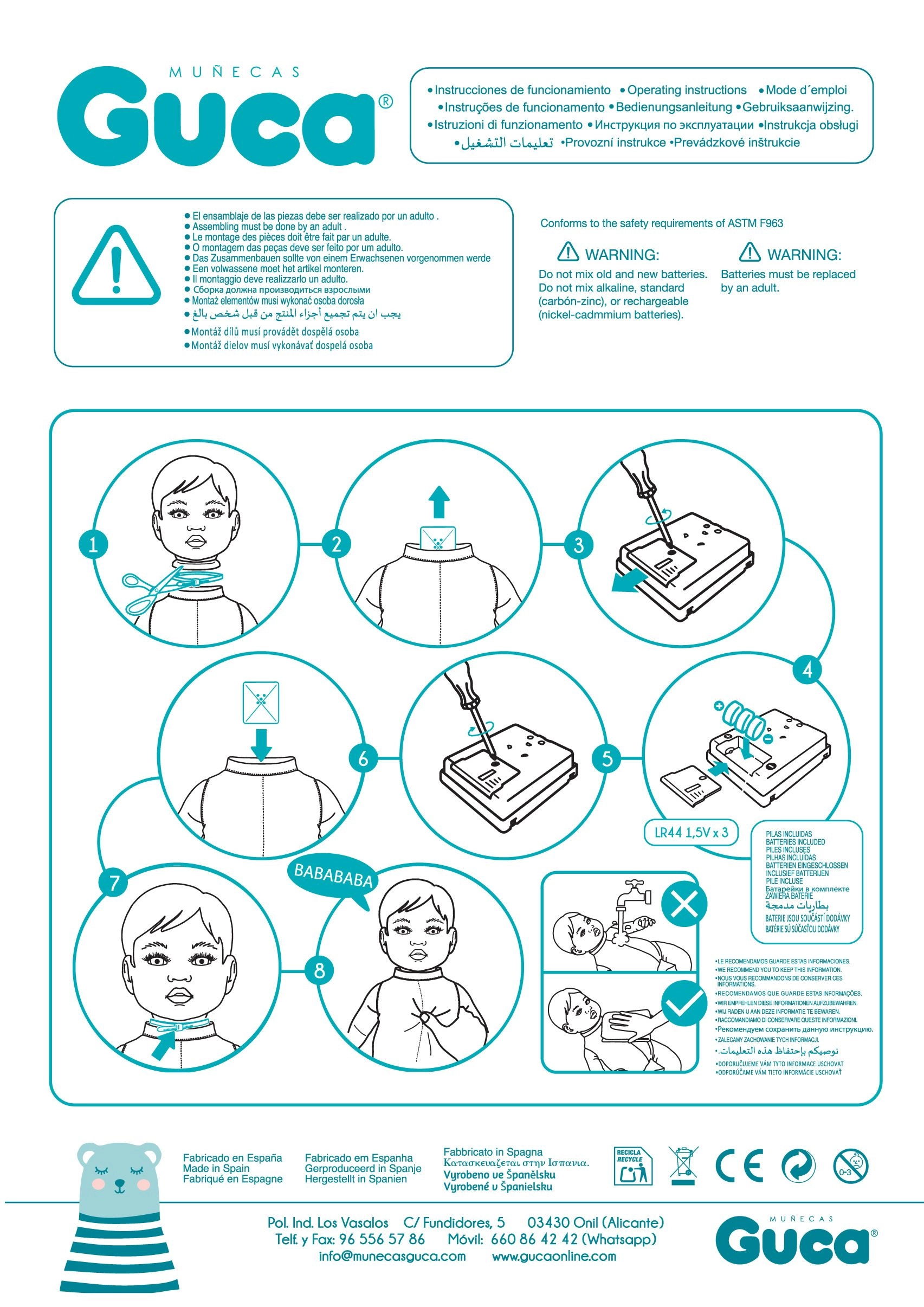 Lelle ir rokām darināta Spānijā, kas garantē augstu izgatavošanas kvalitāti. Iepakojumā iekļauts dudelis (papildpiederums) un LR44 (3×) baterijas ar nomaiņas pamācību. Ideāla dāvana bērniem no 3 gadu vecuma, iepakota elegantā dāvanu kastē.