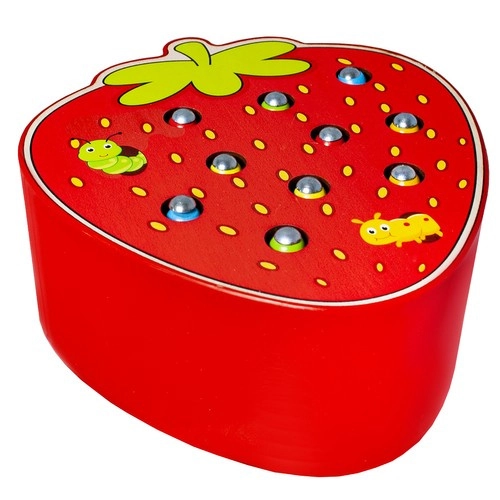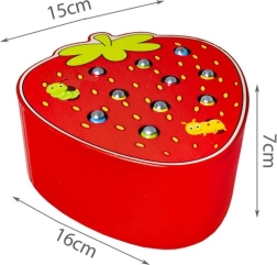 Koka spēle sulīgas zemenes formā pārvērš tārpiņu ķeršanu aizraujošā nodarbē. Ar magnētu aprīkotu koka nūjiņu bērni izceļ tārpiņus no caurumiņiem un trenē precizitāti, pacietību un kustību koordināciju. Spēle izklaidē un vienlaikus māca – ideāli pirmsskolas prasmju attīstībai.