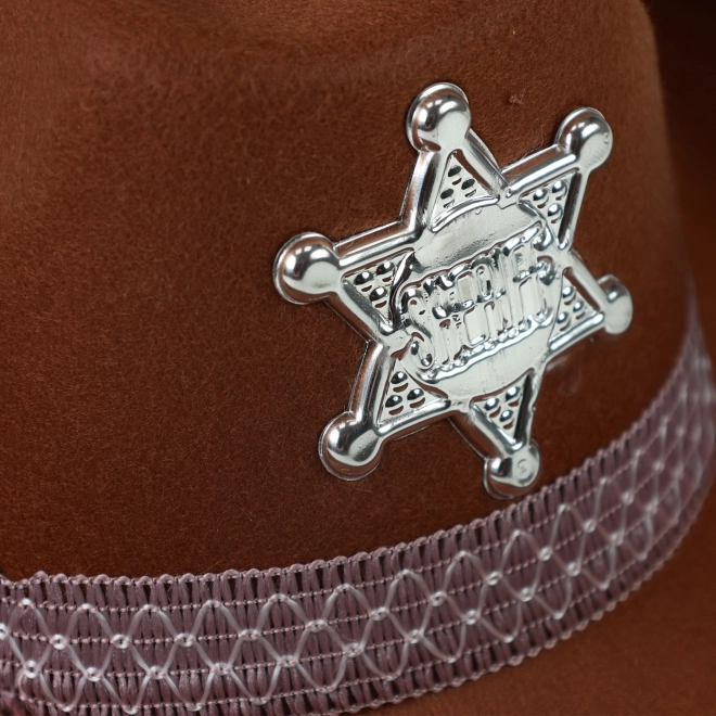 Pārvērtiet mazo kovboju par šerifu acumirklī. Brūnā cepure ar stilīgu lenti un spīdīgu šerifa zvaigzni droši turas pateicoties gummiņai, tāpēc lieliski sēž arī aktīvās rotaļās.