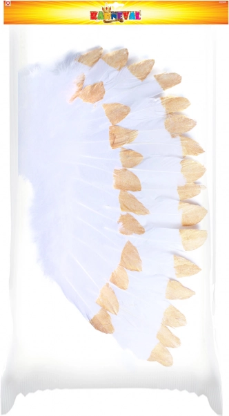 - Luksusa izskats ar baltām spalvām un zeltainiem mirdzumiem.