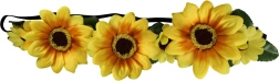 Šo galvas lentu rotā trīs lieli dzelteni ziedi, kas piesaista uzmanību un piešķir jūsu izskatam svaigumu un oriģinalitāti. Galvas lenta ir ērta, pateicoties gumijas stiprinājumam, kas nodrošina drošu un komfortablu valkāšanu visas dienas garumā.
