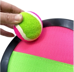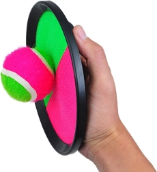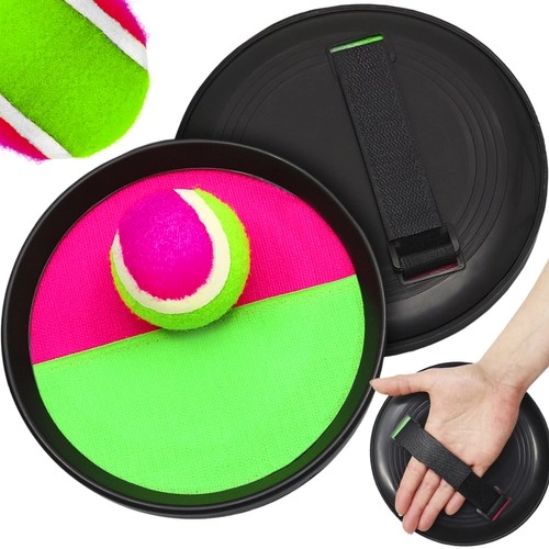 Izbaudiet daudz jautrības ar vienkāršu un aizraujošu spēli, kurā bumbiņa pēc atsitiena pielīp paletes virsmai. Pietiek to viegli atdalīt, un metiens turpinās. Pateicoties regulējamai siksniņai aizmugurē, paletes ērti pielāgosiet plaukstas izmēram, tāpēc tās lieliski der gan bērniem, gan pieaugušajiem.