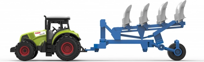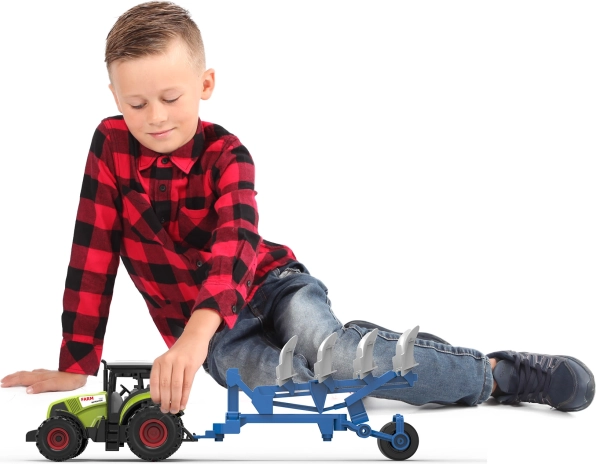 Par braukšanu rūpējas inerciālais mehānisms, tāpēc traktors viegli uzsāk kustību ar nelielu grūdienu. Komplekta kopējais garums ir 37 cm, kas nodrošina stabilitāti un ērti vadāmu izmēru mazām bērnu rokām. Baterijas ir iekļautas komplektā, tāpēc bērni var sākt spēlēties uzreiz pēc izpakošanas.