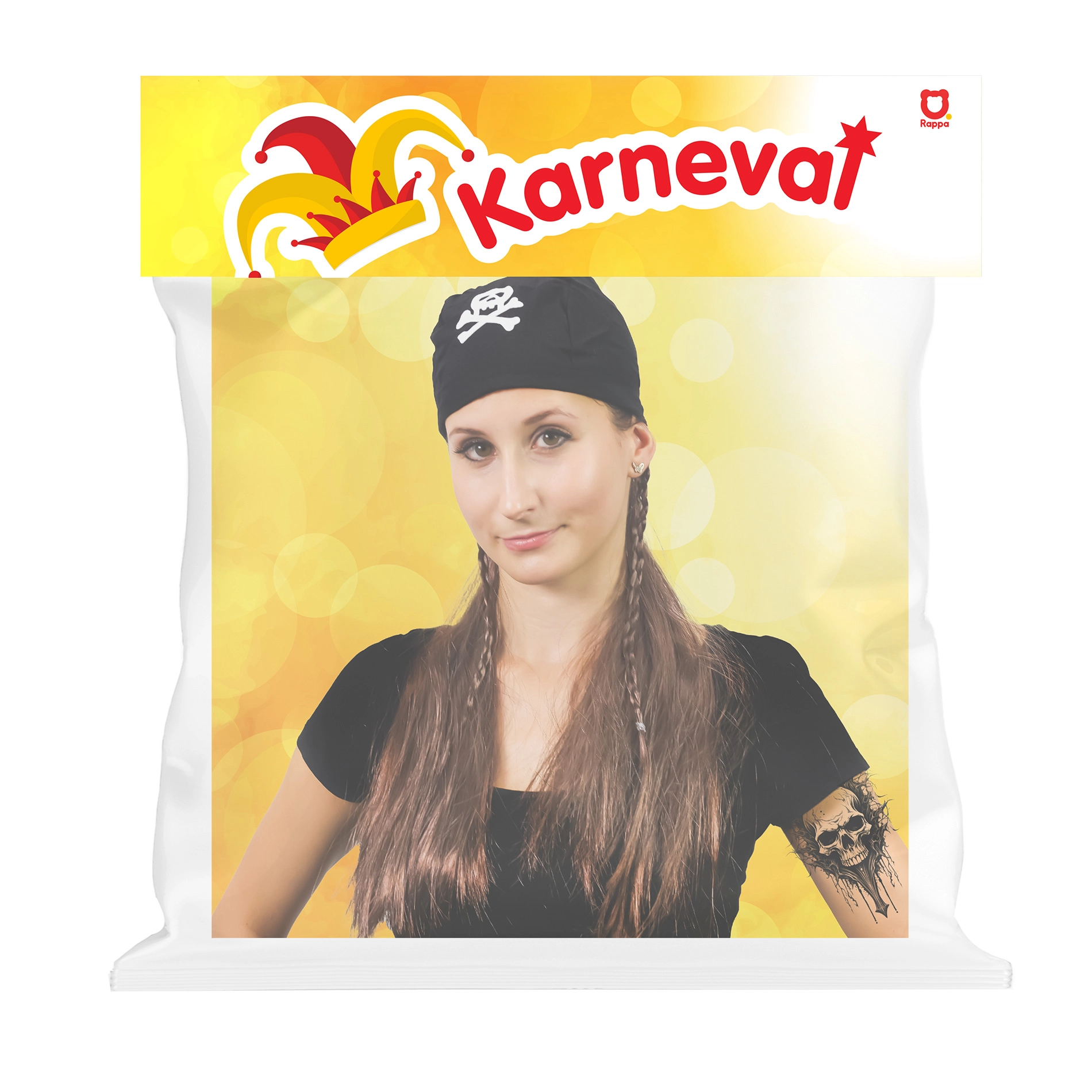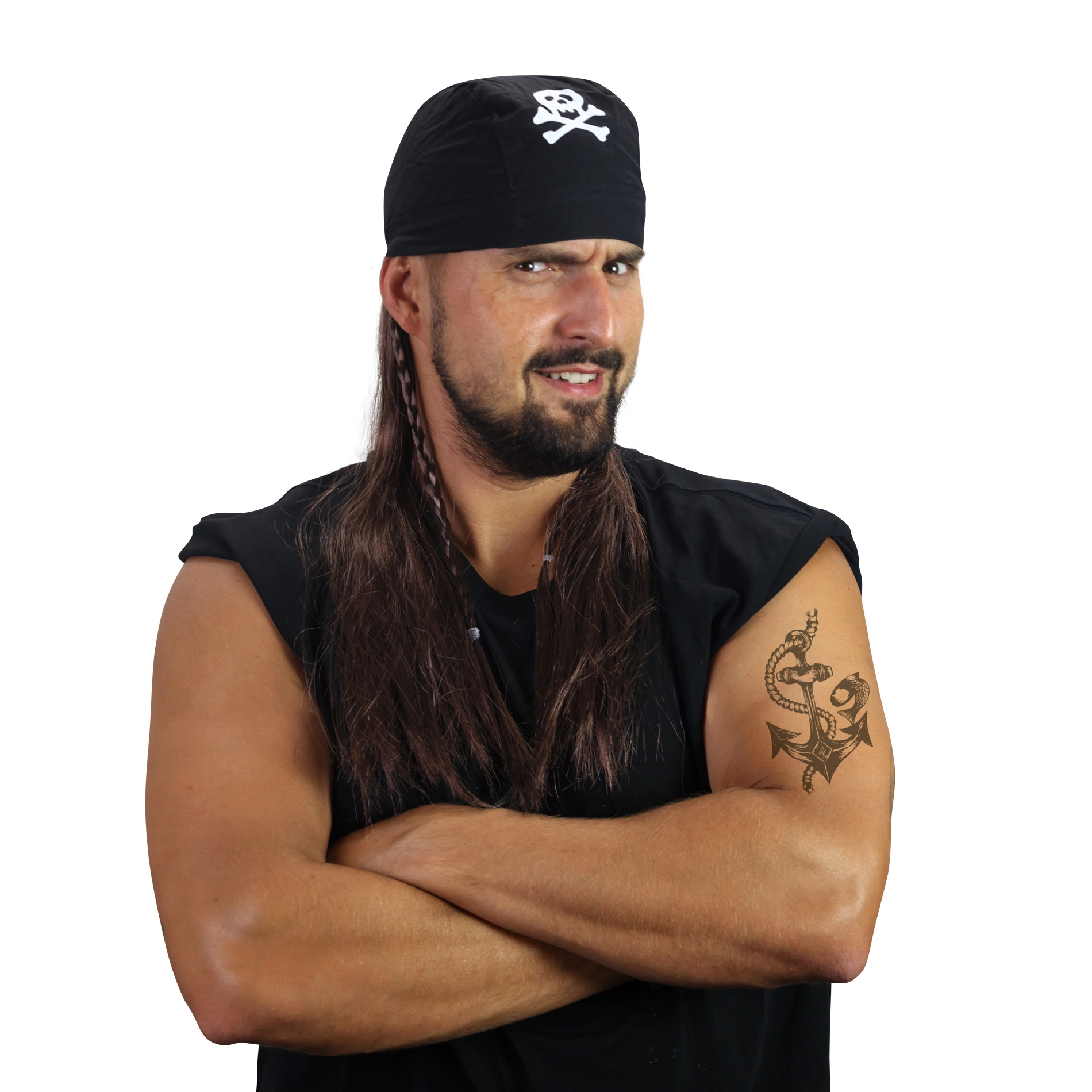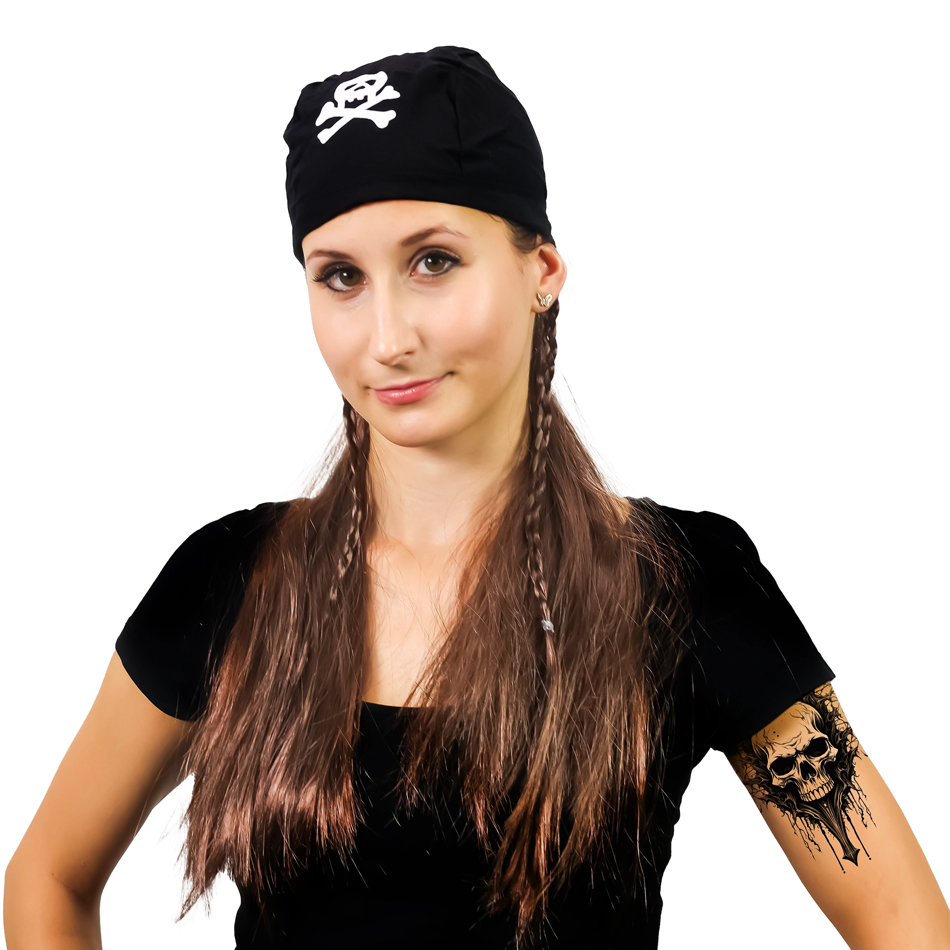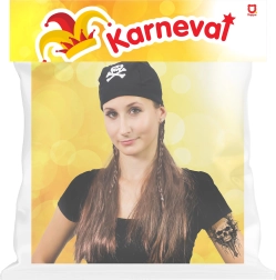 Iekāpiet bezbailīga pirāta lomā dažu sekunžu laikā. Šī pirātu parūka ar lakatu izceļas ar košu pirātu izskatu ar galvaskausa un krustoto kaulu simbolu, kas uzreiz piesaista uzmanību. Lieliski piemērota karnevālam, Helovīnam, masku ballēm un tematiskiem vakariem.