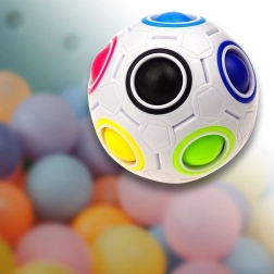 Galvaslauzēja bumba Rainbow Ball ir gudra un aizraujoša rotaļlieta, kas darbojas pēc bīdāmo galvaslauzēju principa. Jūsu uzdevums ir pārvietot bumbiņas starp atverēm un saskaņot tās ar krāsainajiem gredzeniem. Viena atvere bez krāsaina gredzena paliek tukša un kalpo kā pagaidu vieta pārvietošanai.