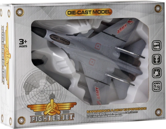 Izklaidējošs militārais iznīcinātājs brūnā krāsā piedāvā gaismas efektus, reālas skaņas un atpakaļejošu inerces piedziņu dinamiskai braukšanai. Lieliska izvēle lidmašīnu cienītājiem un mazajiem pilotiem. Iepakojumā iekļautas 3× AG13 baterijas, tādēļ izklaide var sākties uzreiz.