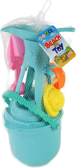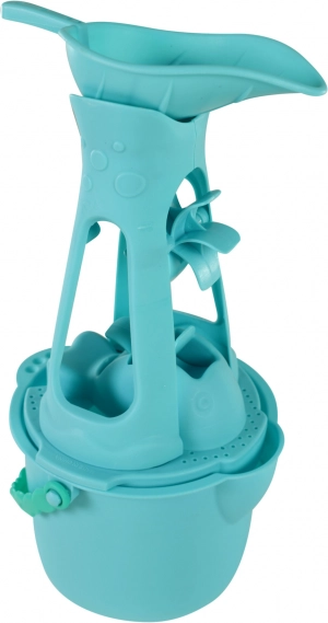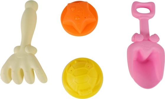 Komplektā ietilpst spainītis, lāpstiņa, grābeklis, divas formiņas un dzirnaviņas — ideāla kombinācija smilšu spēlēm.