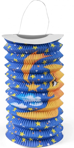 Krāsains papīra lampions ar mēness motīvu piešķirs svētkiem siltu noskaņu. Pateicoties 15 cm diametram, tas ir ideāli piemērots kā ballīšu dekorācija, un apakšējā daļā droši novietosiet tējas sveci.