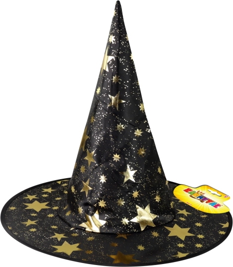 Pārvērties par mazo raganiņu vai burvi dažu mirkļu laikā. Šī melnā cepure ar zelta zvaigznēm ir perfekts papildinājums tērpam Helovīnā, bērnu svinībās un skolas karnevālos. Pateicoties vieglajam materiālam, tā ir patīkama valkāšanā un labi saglabā formu.