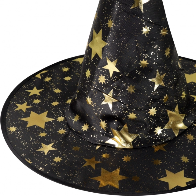 Melnā pamatne ar košām zeltītām zvaigznēm uzreiz piesaista uzmanību un papildina jebkuru Helovīna vai karnevāla tērpu.