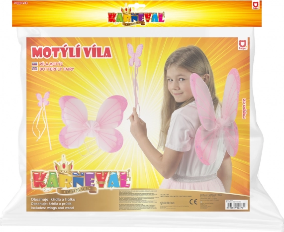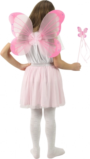 Rozā spārni un nūjiņa ar tauriņa dekoru ir ideāli piemēroti karnevāliem, masku ballēm un spēlēm par feju.