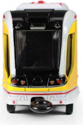 Šis rūpīgi izstrādātais metāla tramvajs ikoniski dzeltenā izpildījumā piedāvā reālistisku izskatu un funkcijas, kuras bērniem patīk. Izturīgais metāla korpuss nodrošina ilgu kalpošanas laiku, savukārt viegli lietojamais atvilkšanas mehānisms sniedz daudz izklaides brauciena laikā.
