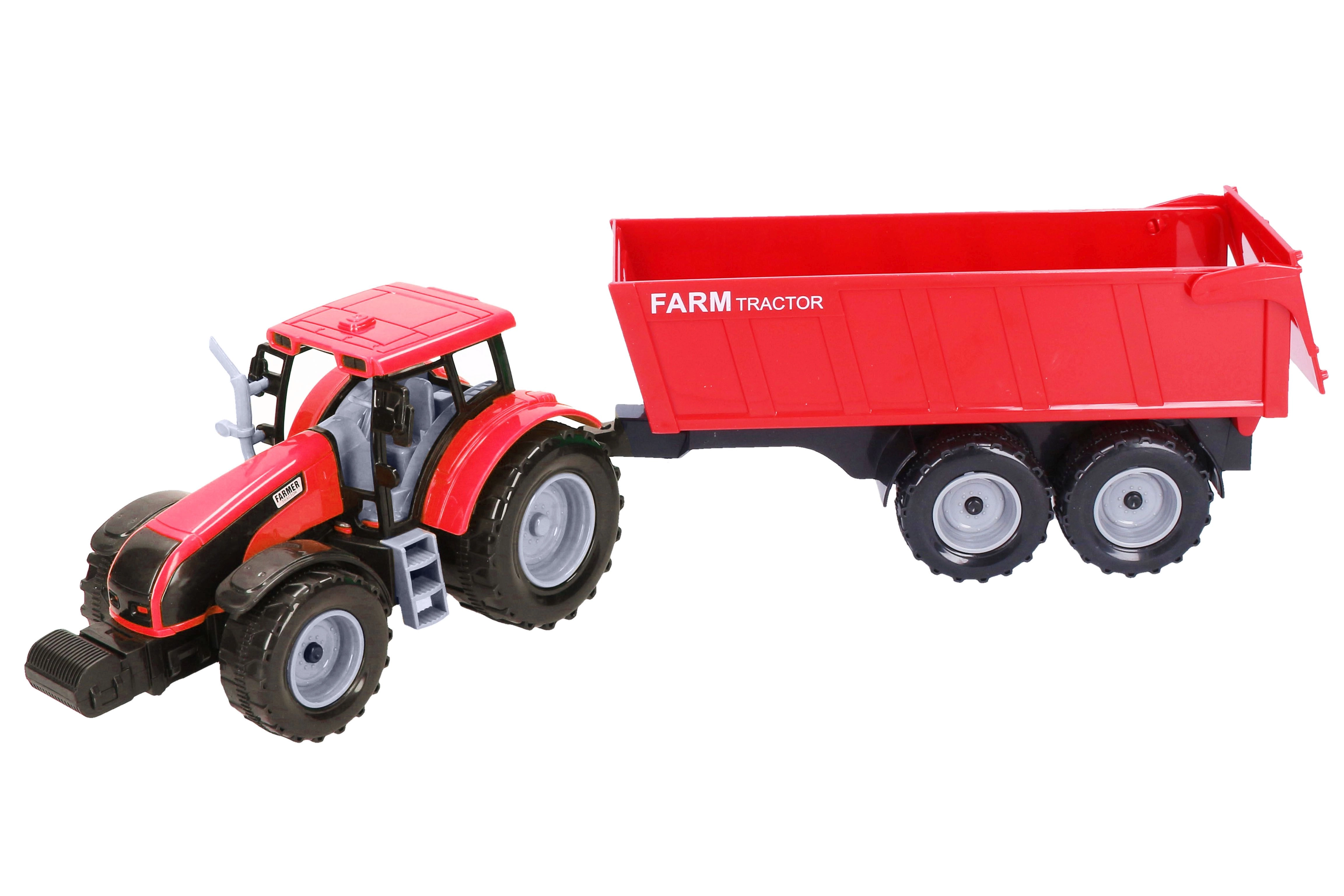 Atklājiet jautrību un iespējas ar šo inerces piedziņas traktoru, kas aprīkots ar piekabi 42 cm garumā.