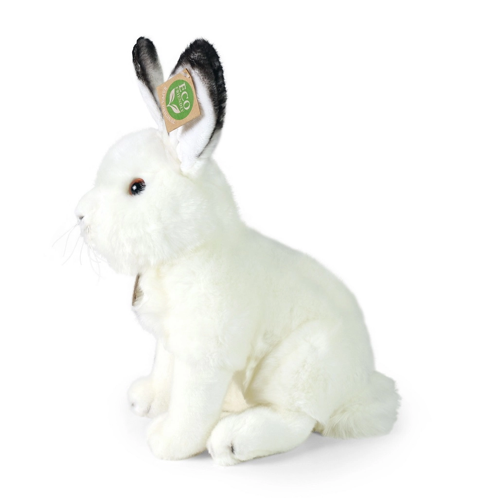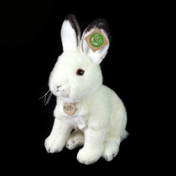 Detalizēta forma, maigs balts plīšs un melni noapaļotas ausu galiņas piešķir zaķim autentisku izskatu, ko iemīlēsiet.