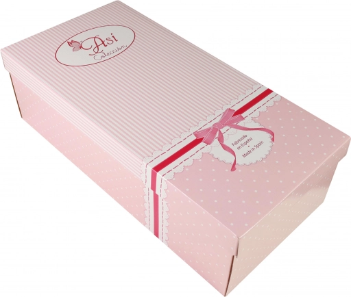 Detalizētās sejas iezīmes, nemirkšķinošas zilas akrila acis un pielīmētas skropstas piešķir lellei María autentisku izteiksmi. Pilnībā no vinila veidotais ķermenītis ir stingrs un izturīgs ikdienas rotaļām.