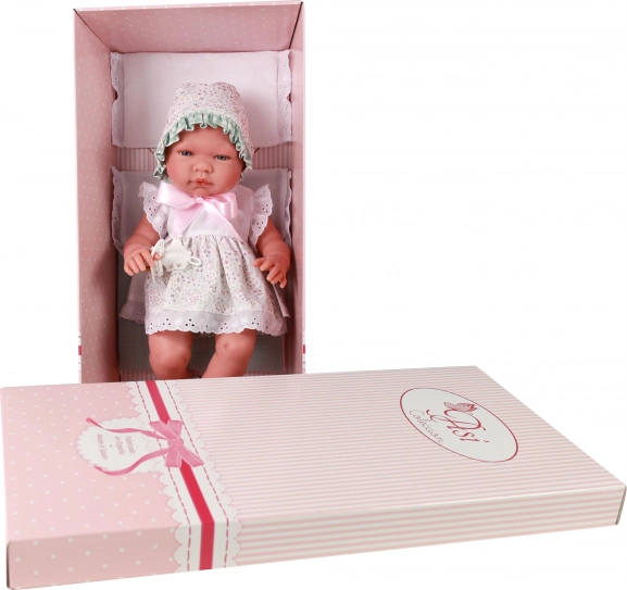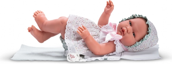 Lelle ir skaisti ģērbta baltā mežģīņu kleitiņā ar cepurīti un tiek piegādāta ar spilventiņu, sedziņu un knupīti uz ķēdītes, ko var ievietot mutītē. Piemērota lomu rotaļām, attīsta empātiju, sīko motoriku un iztēli.