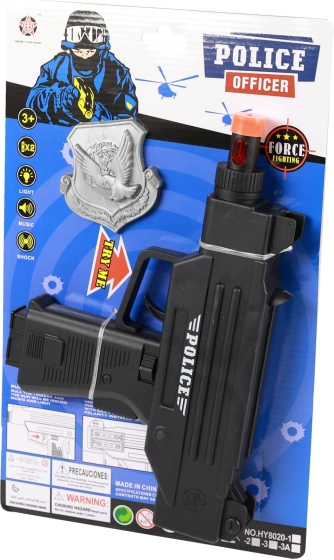Aprīkojiet mazo policistu ar lielisku automātu, kas sniedz gaismu un skaņu vēl autentiskākai spēlei. Pateicoties košajam oranžajam uzgalim, ir skaidrs, ka tā ir droša rotaļlieta, un komplektā ir arī policijas nozīme pilnvērtīgai lomai.