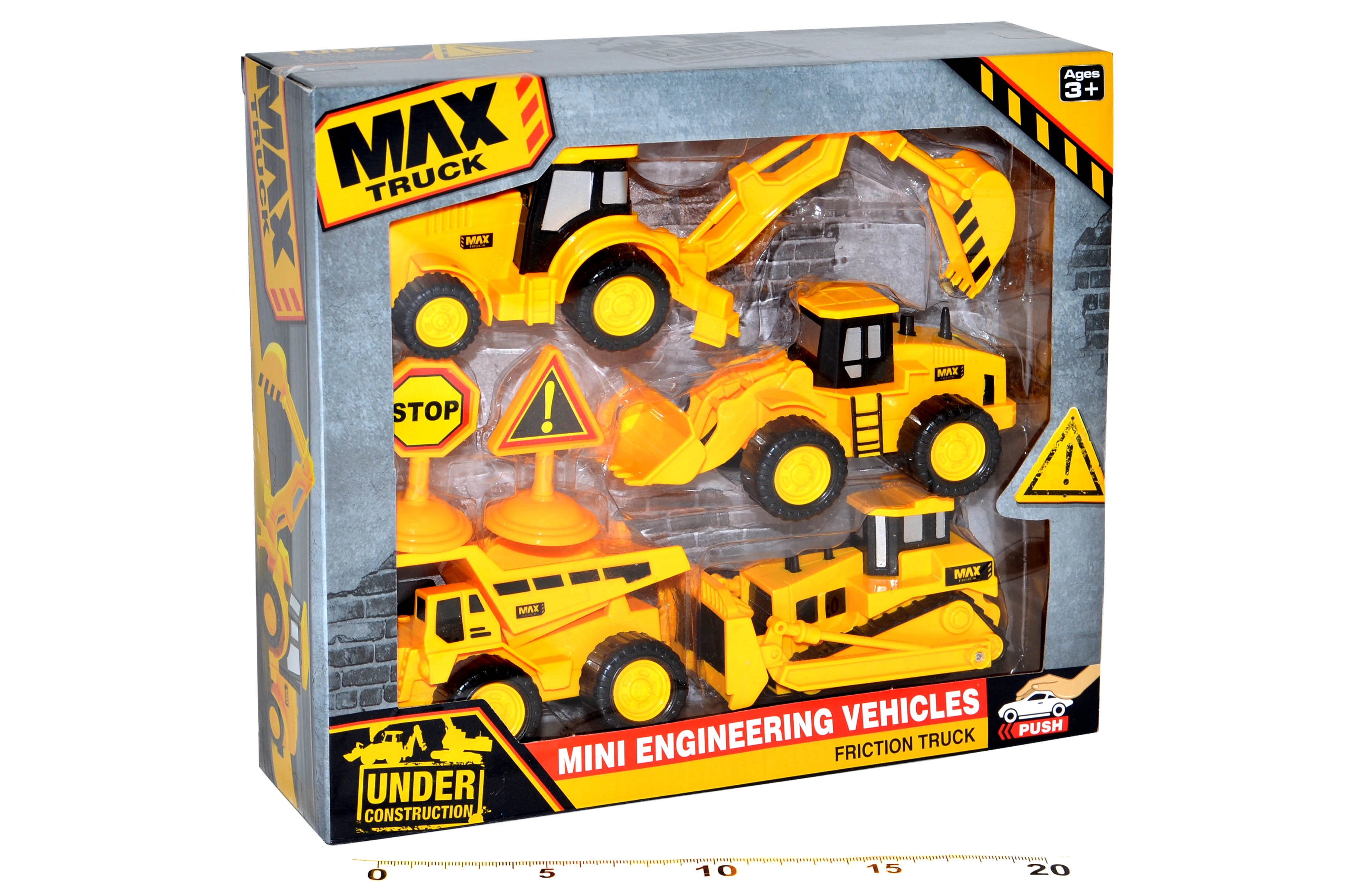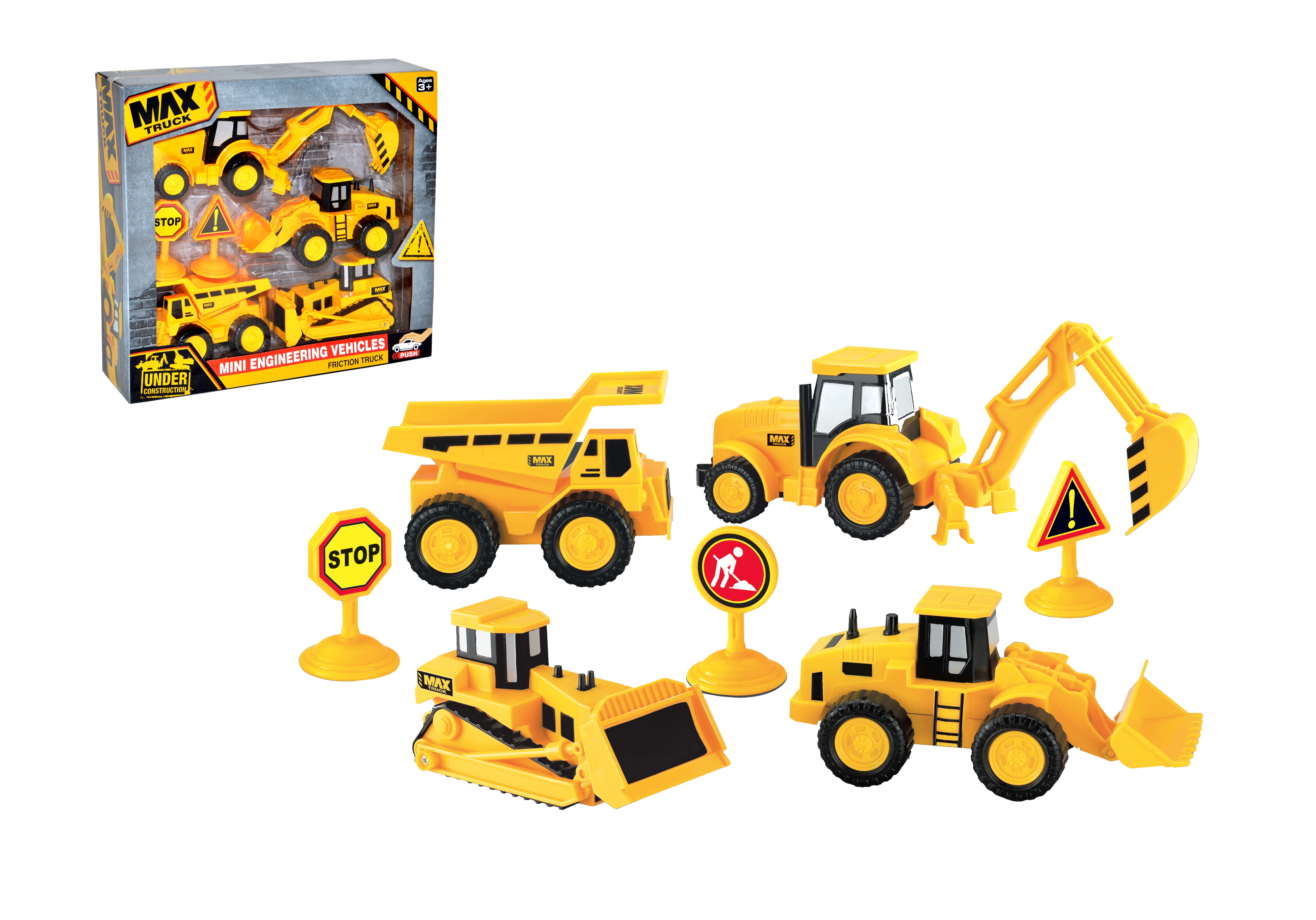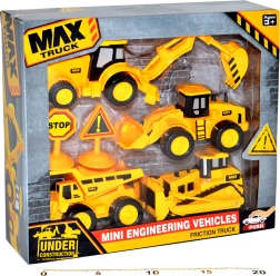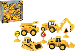 Būvniecības tehnikas komplekts mazajiem būvtehnikas entuziastiem. Iekļauti četri dažādi mehānismi, tostarp buldozeri un ekskavatori, kas paplašina spēles iespējas.