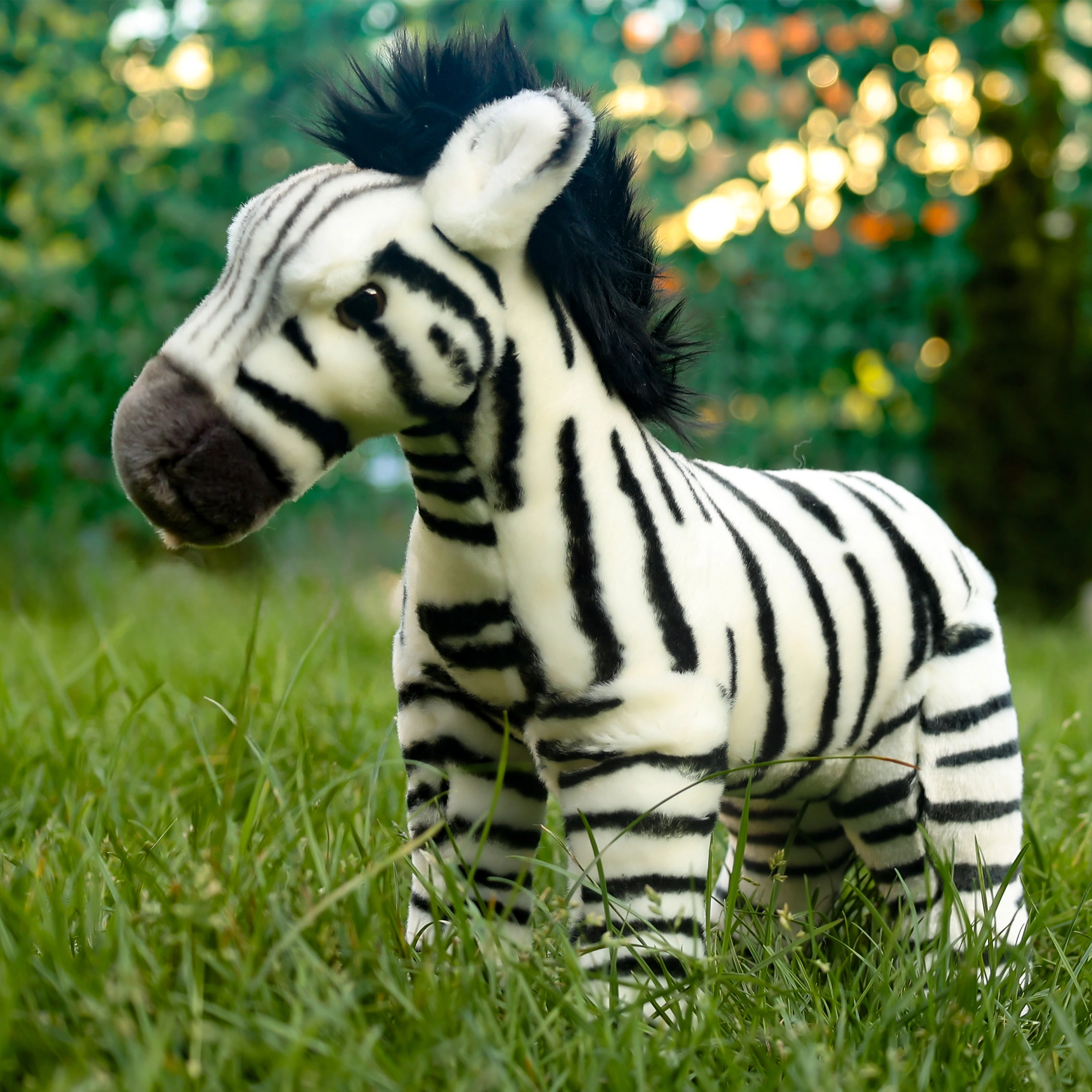 Šī stāvošā mīkstā zebra iepriecinās ikvienu bērnu un dzīvnieku mīļotāju. Pateicoties roku darbam un detalizētam, reālistiskam izskatam, tā kļūs par iemīļotu mīļošanās biedru un arī par dekorāciju bērnu istabā. Maigs, patīkams materiāls nodrošina komfortu un drošību rotaļās.
