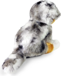 Plīša rotaļlieta izskatās autentiski, pateicoties augstas kvalitātes plīša materiālam un precīzam roku darbam.