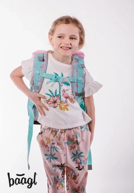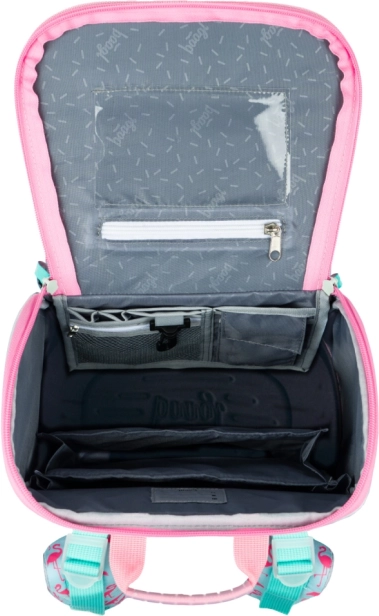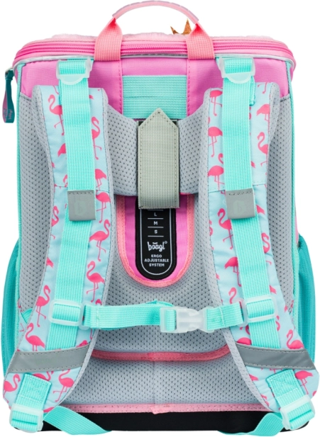 Skolas komplekts Zippy Flamingo ir ideāla izvēle bērniem un vecākiem, kuri meklē kvalitātes, komforta un stila apvienojumu. Ergonomiskā aktovka ir aprīkota ar bīdāmo muguras sistēmu ERGO ADJUSTABLE SYSTEM, kas ļauj optimāli pielāgot siksnas atbilstoši bērna augumam. Aktovkas korpuss ir izgatavots no stingra, ūdensizturīga materiāla, kas saglabā stabilu formu, un svars ir tikai 1 100 g.