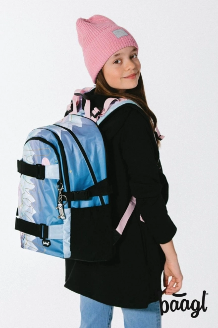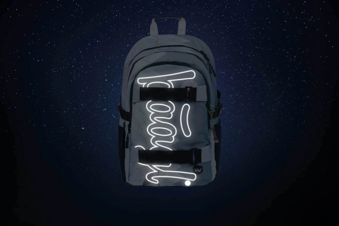 Mugursoma BAAGL Skate Moon ir aprīkota ar pilnībā regulējamām plecu, krūšu un sānu kompresijas siksnām, kas ļauj optimāli pielāgoties augumam. Neliels svars un atstarojošie elementi nodrošina komfortu un drošību ikdienas nēsāšanā.