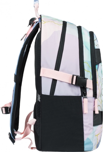 Skolas mugursoma Skate Moon piedāvā ergonomisku dizainu ar regulējamām siksnām un trim ietilpīgām nodalījumiem. Tai ir speciāla kabata klēpjdatoram vai planšetei un elastīgas sānu kabatas pudelītei. Nelielais svars 850 g un 25 litru tilpums to padara par ideālu izvēli ikdienas lietošanai. Mugursoma ir aprīkota arī ar atstarojošiem elementiem lielākai drošībai.