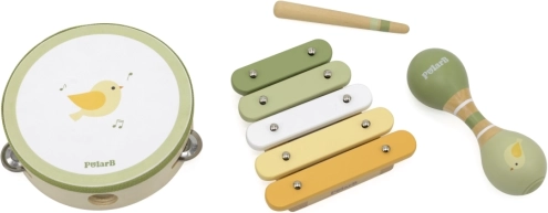 Bērnu muzikālā komplekts no PolarB piedāvā trīs košus un drošus instrumentus mazajiem mūzikas entuziastiem. Komplektā iekļauti tamburīns, ksilofons un marakas, kas veicina dzirdes spēju attīstību un roku-acu koordināciju.