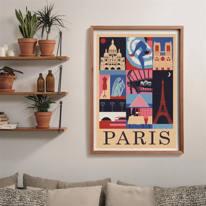 Motīvs ar Eifeļa torni un citām Parīzes ikonām izceļas ar piesātinātām krāsām un augstu asumu, kas uzsver katru gala attēla detaļu.