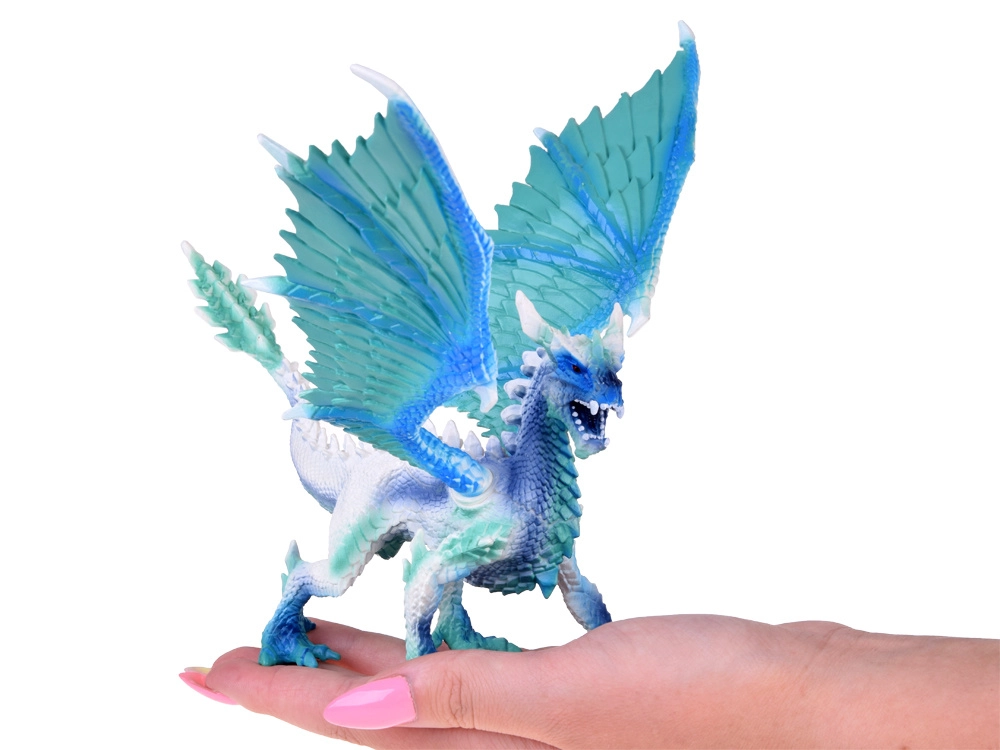 Šis majestātiskais ledus pūķis ir spēka un fantāzijas simbols. Pateicoties izplešamiem un nolokāmiem spārniem, jūs viegli izveidosiet dinamiskas lidojuma vai atpūtas ainas. Reālistiska zvīņu tekstūra, asi nagi un izteiksmīga krāsojuma gamma veicina iztēli un ienes spēlē mītu un piedzīvojumu noskaņu.