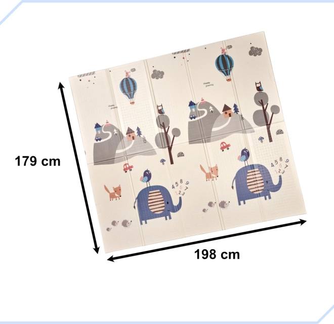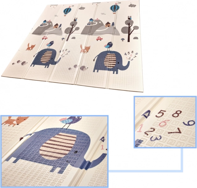 Praktisks bērnu rotaļu paklājs no XPE putām ir divpusējs, saliekams un nodrošina plašu, mīkstu vietu rotaļām un pirmajiem soļiem. Vienā pusē attēloti meža dzīvnieki un pauguri, otrā – ceļi un pilsēta braukšanai ar mašīnītēm. Viegli kopjams, izolē no aukstuma un, pateicoties 1 cm biezumam, palielina komfortu un drošību.