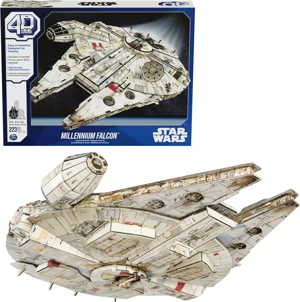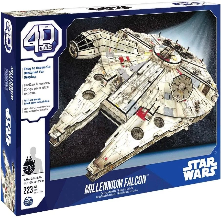 Uzceliet savu Millennium Falcon un izstādiet to uz statīva ar STAR WARS emblēmu. 4D Build komplekts piedāvā filmu līmeņa detaļas, 223 izņemamas detaļas uz 10 loksnēm, pievienotu līmi un stabilu pamatni. Modelis ar izmēriem 43 × 31,4 × 22,4 cm ir ideāls kā kolekcionāru dekorācija istabai, spēļu telpai vai birojam un lieliska dāvana faniem no 14 gadiem.