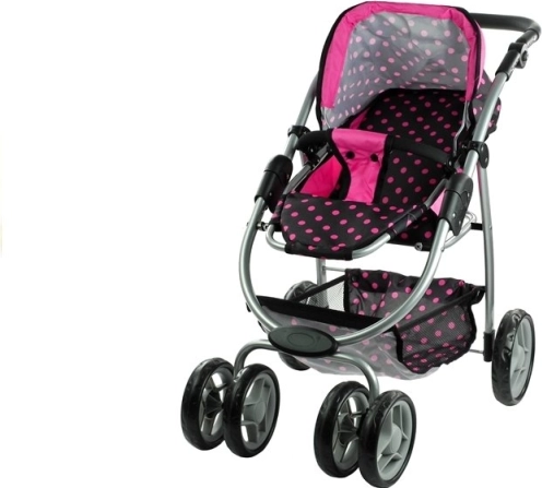 Ratiņi Alice 2-in-1 melni-rozā dizainā apvieno stilu un funkcionalitāti. Tie ir veidoti, lai izskatītos kā īsti bērnu rati, kas veicina atbildību un empātiju mazajām māmiņām spēles laikā. Pārejas starp dziļo kulbu un sporta sēdekli piešķir vairāk jautrības un attīsta bērnu starpprasmju spējas, iztēli un radošumu.