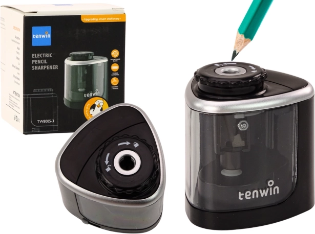 Praktiskais asināmais apvieno elektriskās piedziņas ātrumu un komfortu ar iespēju lietot manuāli. Pateicoties saderībai ar 6–8 mm zīmuļiem un krītiņiem, tas ir piemērots skolēniem, studentiem, māksliniekiem un birojam. Caurspīdīgā tvertne atvieglo piepildījuma kontroli, bet vāciņa slēdzis novērš skaidiņu izbēršanos.