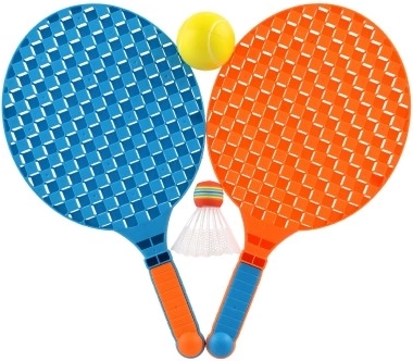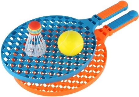 Komplektā ietilpst bumbiņa un krāsains groziņš, tāpēc tas ir lieliski piemērots gan mīkstajam tenisam, gan badmintonam.