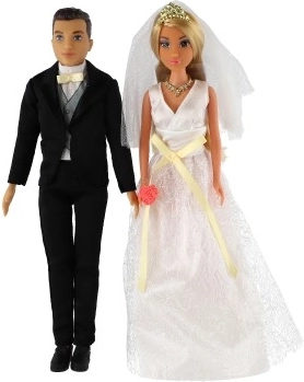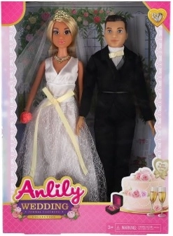 Šis ANLILY kāzu leļļu komplekts bērnu spēlēs ienes romantiku un stilu. Līgava mirdz baltā mežģīņu kleitā ar plīvuru un tiāru, līgavainis ir gatavs elegantā melnā smokingā ar baltu kreklu un tauriņu. Pateicoties izturīgam plastmasas izpildījumam, lelles ir lieliski piemērotas ikdienas rotaļām.