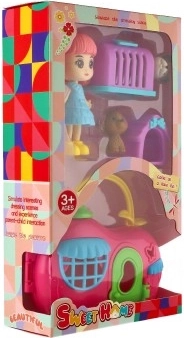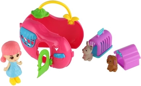 Šis krāsainais komplekts bērniem atver fantāzijas pasauli un rūpes par dzīvnieciņiem. Pārnēsājamais namiņš ar rokturi viegli saliekams un pārvietojams, lelle tajā izbaudīs daudz spēļu, bet divi mīluļi padarīs tās vēl jautrākas. Pateicoties kompaktajiem izmēriem, komplekts ir piemērots arī ceļošanai.