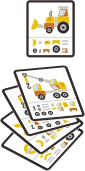 Paraugu kartītes iedvesmo bērnus salikt ekskavatoru, celtni vai kravas automašīnu un māca darboties sistemātiski.