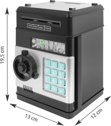Māciet bērniem gudri rīkoties ar naudu, izmantojot šo elektronisko krājkasi mini seifa formā. Tā ļauj ievietot banknotes un monētas, atveras pēc četrciparu PIN ievadīšanas un piedāvā gaismas un skaņas efektus, tostarp angļu valodas balsi. Ideāli bērniem no 6 gadu vecuma – jautrs un drošs veids, kā apgūt taupīšanu.
