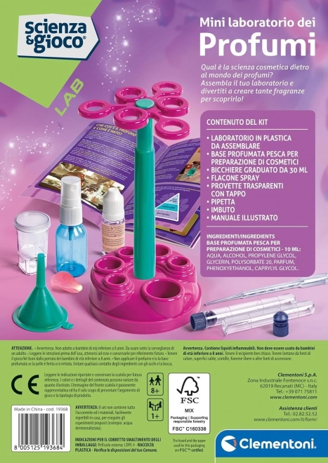 Praktiskais mēģeņu statīvs atvieglo dozēšanu un jaukšanu, savukārt flakons ļauj uzglabāt gatavo smaržu. Attēlu rokasgrāmata saprotami izskaidro soļus un iedvesmo turpmākiem eksperimentiem, kas veicina radošumu un interesi par zinātni.