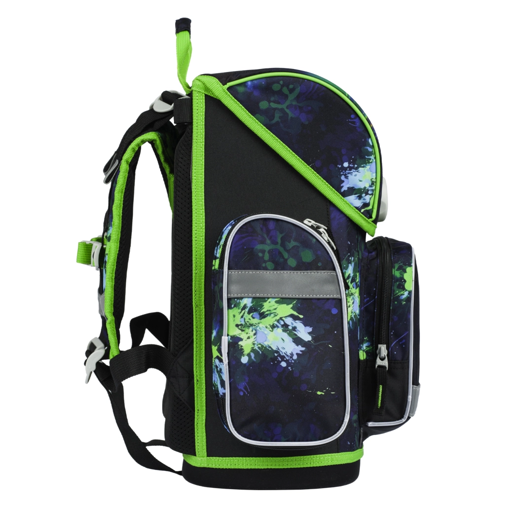 Pilnībā regulējama muguras sistēma, ergonomiski veidota muguras daļa un regulējamas plecu, krūšu un sānu siksnas nodrošina ērtu un veselīgu nēsāšanu jau no 1. klases.