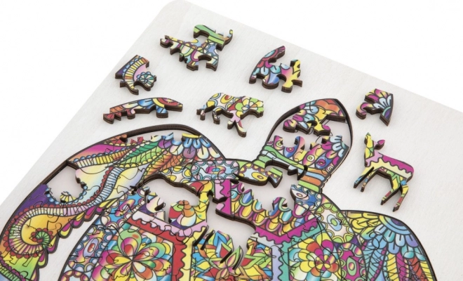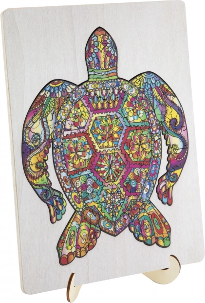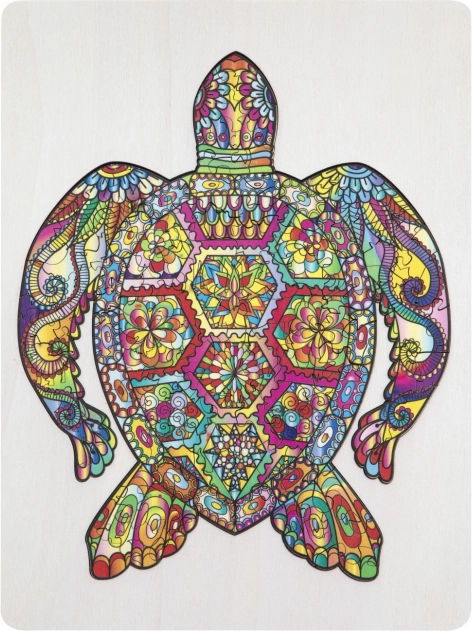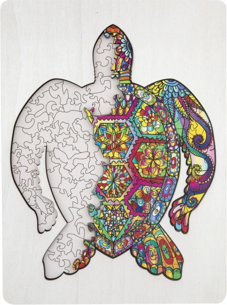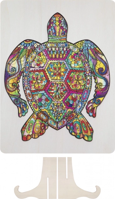 Koka kontūrpuzle bruņurupuča formā ar dažādas formas gabaliņiem ir ideāli piemērota bērniem un pieaugušajiem. Tā ietver gabaliņus dzīvnieku un priekšmetu formās, kas palielina pievilcību un jautrību.