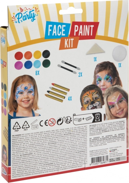 Sejas gleznošanas komplekts ir ideāli piemērots jebkurai svinībai, kur vēlaties izcelties ar radošiem dizainiem. Tas ietver astoņas sejas krāsas, tostarp košus un dzīvus toņus, kurus bērni iemīlēs. Uzklāšana ir vienkārša: maigi uznesiet krāsas uz sejas vai ķermeņa ar aplikatoru. Lielākām virsmām izmantojiet sūklīti, lai panāktu vienmērīgu pārklājumu.