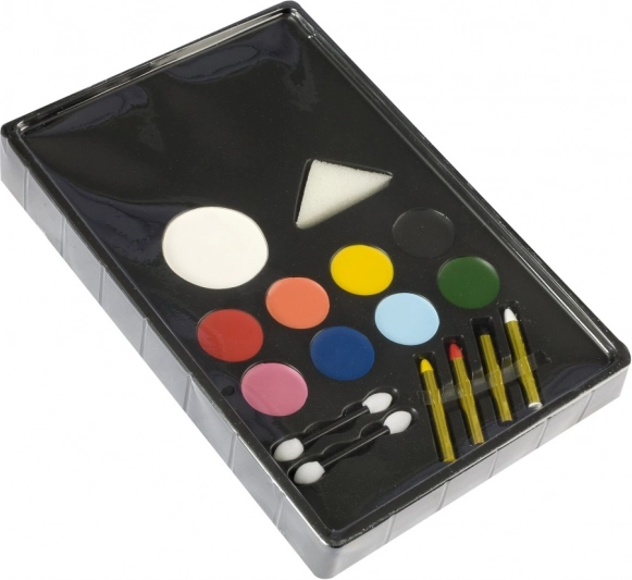 Krāsas ir viegli uzklāt ar iekļautajiem aplikatoriem un sūklīti. Pēc ballītes krāsas vienkārši notīriet ar ūdeni vai kosmētikas noņemšanas tamponu.