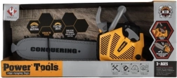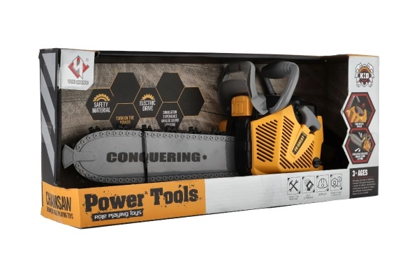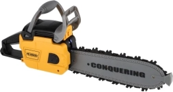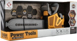 Šis bērnu ķēdes zāģis ar realistisku izskatu sniedz autentisku spēles pieredzi – pavelkot par starteri, tas “iedarbojas”, nospiežot pogu, ieslēdzas drošs kustīgs asmens, ko papildina gaismas un skaņas efekti. Ideāli piemērots mazajiem koka darbu entuziastiem un lomu spēlēm.