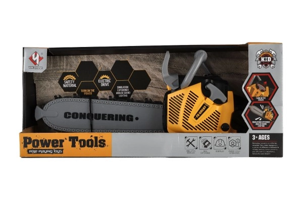 Pavelkot par starteri, zāģis it kā “iedarbojas”, un, nospiežot pogu, tas izdod skaņas un iedegas gaisma. Tas bērniem nodrošina autentisku spēles pieredzi.