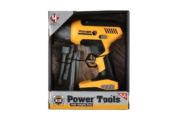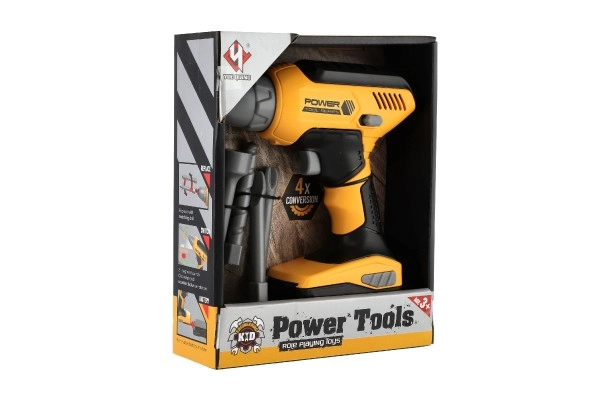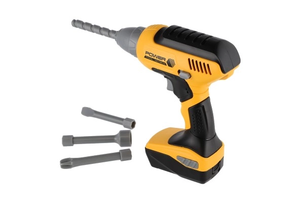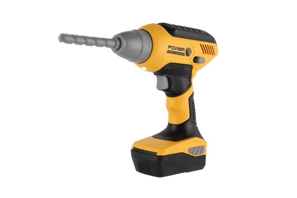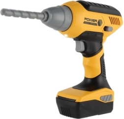 Šī bērnu akumulatora urbjmašīna ikoniskajā dzelteni-melnajā krāsu salikumā ticami atdarina īstu instrumentu un ir lielisks palīgs mazajiem darboties gribētājiem darbnīcā un mājās. Nospiežot sprūdu, uzgalis sāk griezties un urbjmašīna izdod autentiskas urbšanas skaņas, kas pastiprina spēles pieredzi.