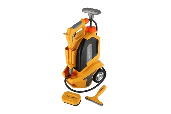 Dodiet saviem bērniem lielisku rotaļlietu tīrīšanas atdarināšanai, kas palīdzēs attīstīt radošumu un prasmes. Augstspiediena mazgājamā ierīce ar piederumiem ir ideāli piemērota bērniem no 3 gadu vecuma, to ir viegli lietot un tā nodrošina stundām ilgu izklaidi. Vienkārši piepildiet tvertni ar ūdeni, izveidojiet spiedienu ar pumpīti un izbaudiet reālistisku spēli ar tekošu ūdeni.