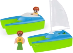 Lena buru kuģu komplekts Katamarāns jautrai spēlei pie ūdens. Satur buru kuģi un katamarānu ar buru, kā arī divas sērfotāju figūriņas.